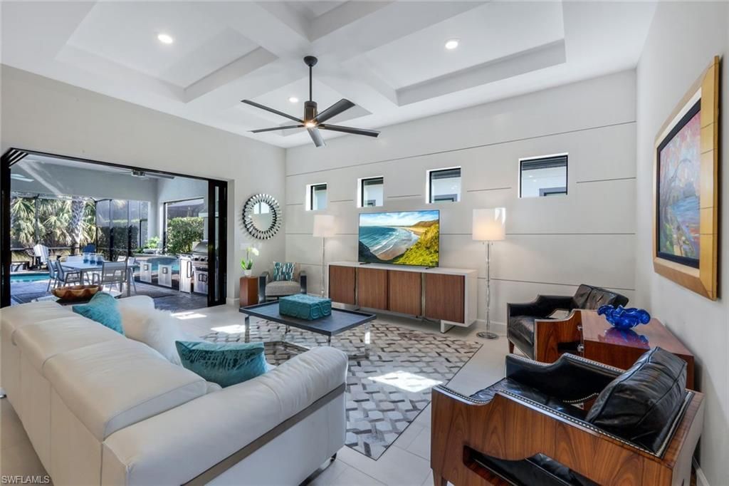 Pool – Impact Resistant Windows & Doors – Tile & Wood Floors (No Carpet, No Vinyl) – Whole House Generator – Outdoor Kitchen – Water Treatment System – and More. Designed for seamless indoor-outdoor living, the open-concept layout features a coffered ceiling and zero-corner sliders that fully open to a sprawling screened lanai. The outdoor space is a private oasis with a heated pool and water feature, custom outdoor kitchen, dining and lounging areas, and a fire pit—perfect for entertaining or relaxing year-round. Inside, enjoy a gourmet kitchen with upgraded appliances, abundant cabinetry, and generous quartz countertops, along with a tranquil primary suite boasting wood floors, tray ceiling, a custom walk-in closet, and a spa-style bath. Two guest bedrooms, a sizable den, and a well-equipped laundry room add comfort and convenience. Premium upgrades, designer features, and two-car garage with epoxy floor and built-in storage. Resort-style amenities. Low HOA fees. No CDD. Exceptional value—don’t miss this luxurious, move-in-ready home in Greyhawk at Golf Club of the Everglades, one of Naples’ most prestigious gated communities. Call or Text Steven Chase at 239-287-0539 for more information.